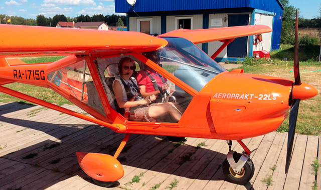 пилотом на двухместном самолете в Подмосковье.